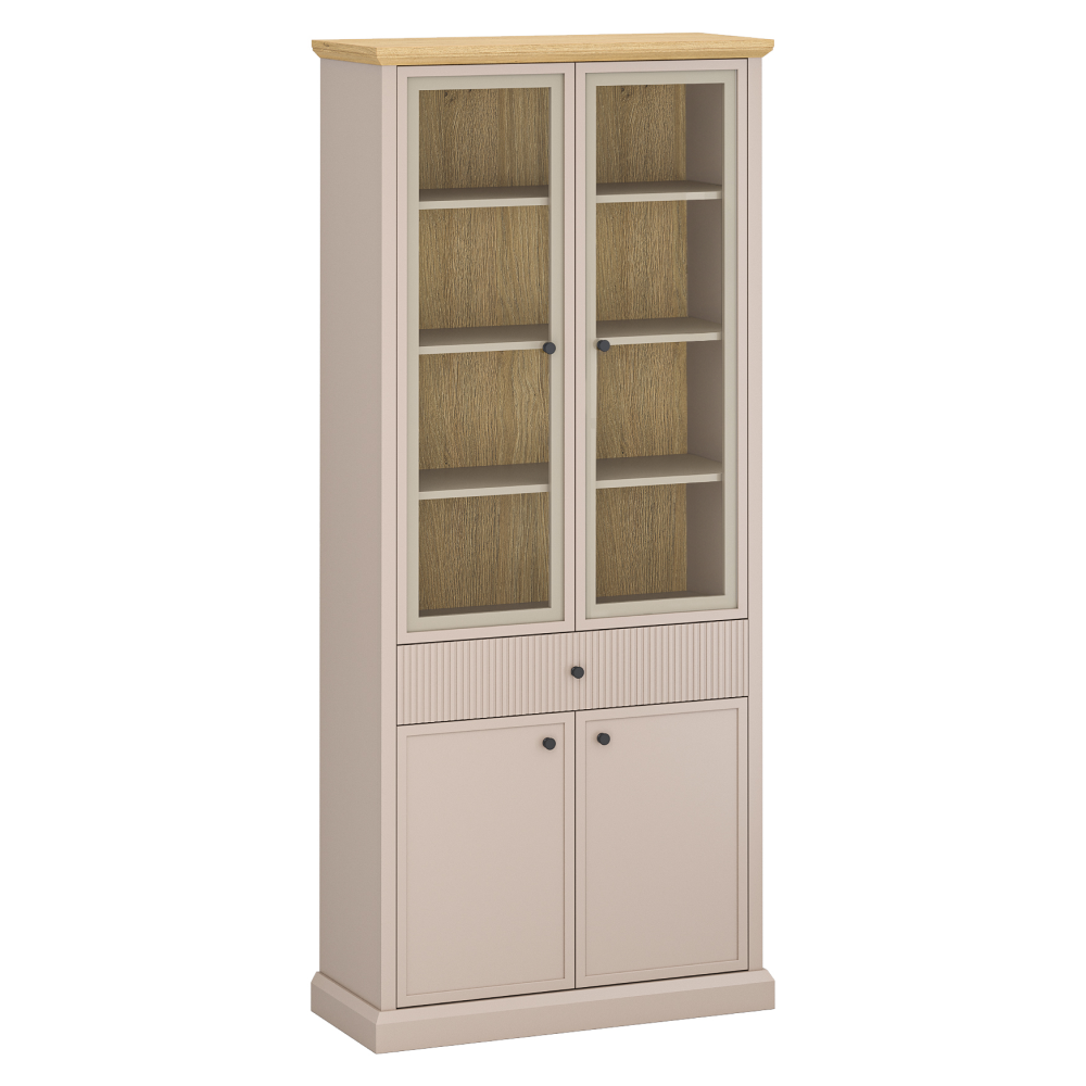 Kondela Vitrin, szürkésbarna Taupe/kő tölgy, IDOL 2D2W1S, Szürke Tálalószekrények és komódok